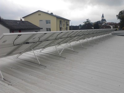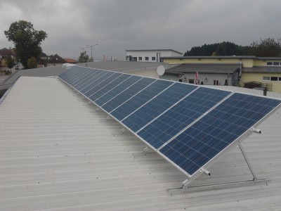 • 100% Südausrichtung auf Trapezblechdach mit Aufständerung